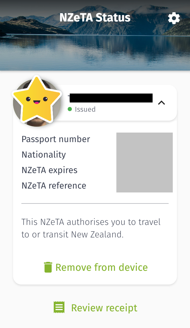 アプリをインストールして、個人情報、旅行期間、自分の顔写真等を登録して完了。費用はNZ$44でした。