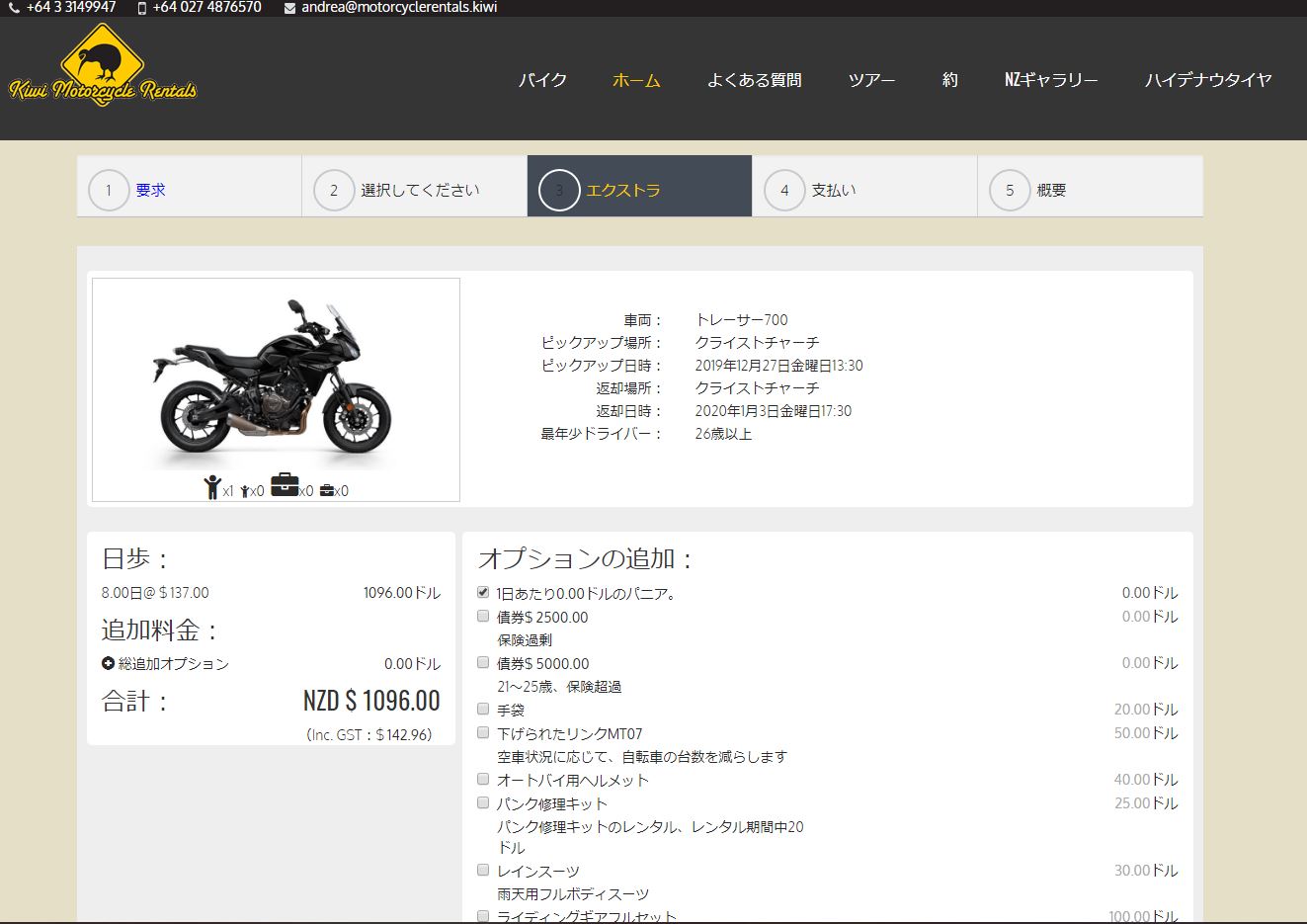 レンタル屋は複数店ありましたが、KiwiMotorRentalsにしました。※日本語サイトが2020年3月で一旦停止して今は英語サイトのみです。。が、また日本語サイトが復活するみたいです!
