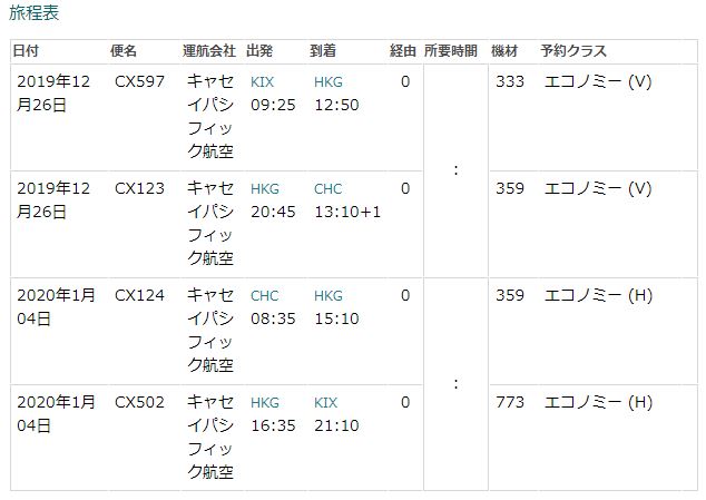 選んだチケットは、キャセイパシフィック航空の関空発~ホンコン経由~クライストチャーチ行きを選択!早めに予約したため往復で14万円で購入できました(安い!?)。